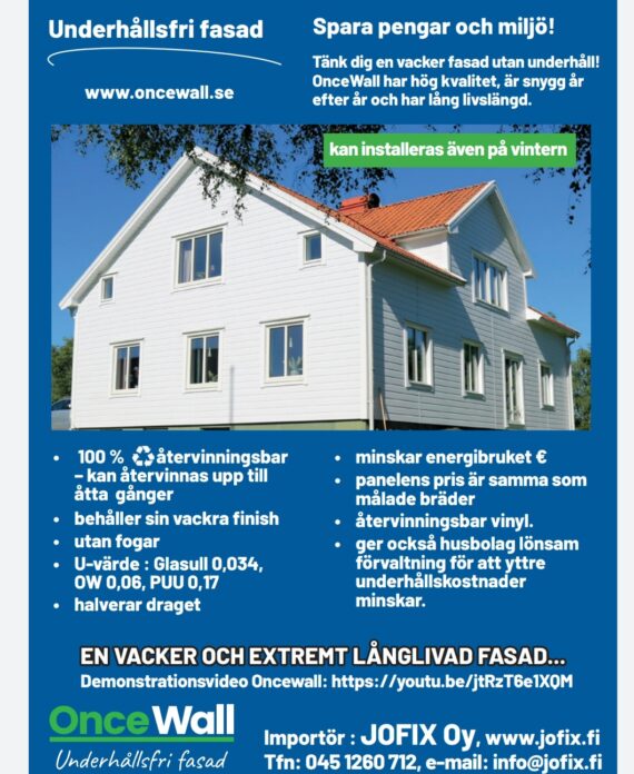 Tässä linkki mistä näet miksi 🏡 OnceWall kierrätys uusiotuote, kestävää kehitystä 🌍 KiertoTaloutta 80-100 vuotta, on niin suosittu Ruotsissa. Myynnin kasvu 2022 on edelleen yli 30%. Asiakastyytyväisyys on huippuluokkaa (löytyy OnceWall haulla :info@jofix.fi oncewall nöjda kunder) , kiitelty Tehtaan monipuolista apua, huippulaatua, neuvontaa, nopeita toimituksia sekä uniikkituotteen edullista hintaa. OnceWall […]