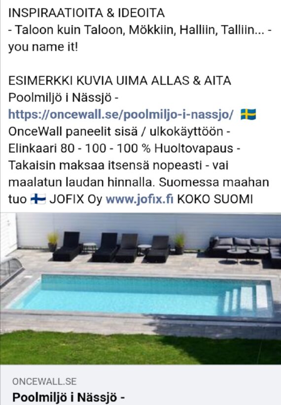 Muutamia asiakaspalautteita : ” Halutessanne kysyä, miten JOFIX – ratkaisut ovat toimineet, voitte soittaa näille asiakkaillemme suoraan heidän luvallaan : Leif Pihl ja Jori Heina : ” Kun asennat taloosi JOFIX vinyyliulkoverhouksen,voit unohtaa talosi ulkoverhousremontin ainakin 50 vuodeksi. Todella mainio juttu ! ” Palotarkastaja, el., keltainen talo, Leif Pihl, Tammisaari puh. […]