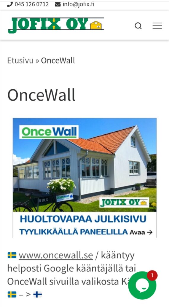 🇸🇪 www.oncewall.se Allt om OnceWall, klik : Klik – Kaikki mitä haluat tietää Oncewall:sta https://www.jofix.fi/?s=ONCEWALL © 2023 Vinyyliverhous – Kaikki oikeudet pidätetään Kaikki mitä haluat tietää Oncewall:sta https://www.jofix.fi/?s=ONCEWALL