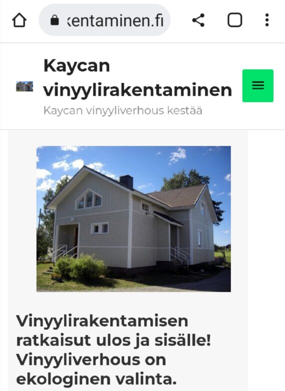 UUSIMAA lehti : Vinyyliverhous yleistyy, www.uusimaa.fi. EKOLOGINEN, ”IKIKESTÄVÄ” TALOJEN ULKOVERHOUS YLEISTYY/JOFIX, Wikipedia intr 1950 To see article below. Artikkeli Vinyyliverhous yleistyy Suomessa : https://www.uusimaa.fi/artikkeli/26513-vinyyliverhous-yleistyy HUOM! 2 X TUULETUS RIMOITUS