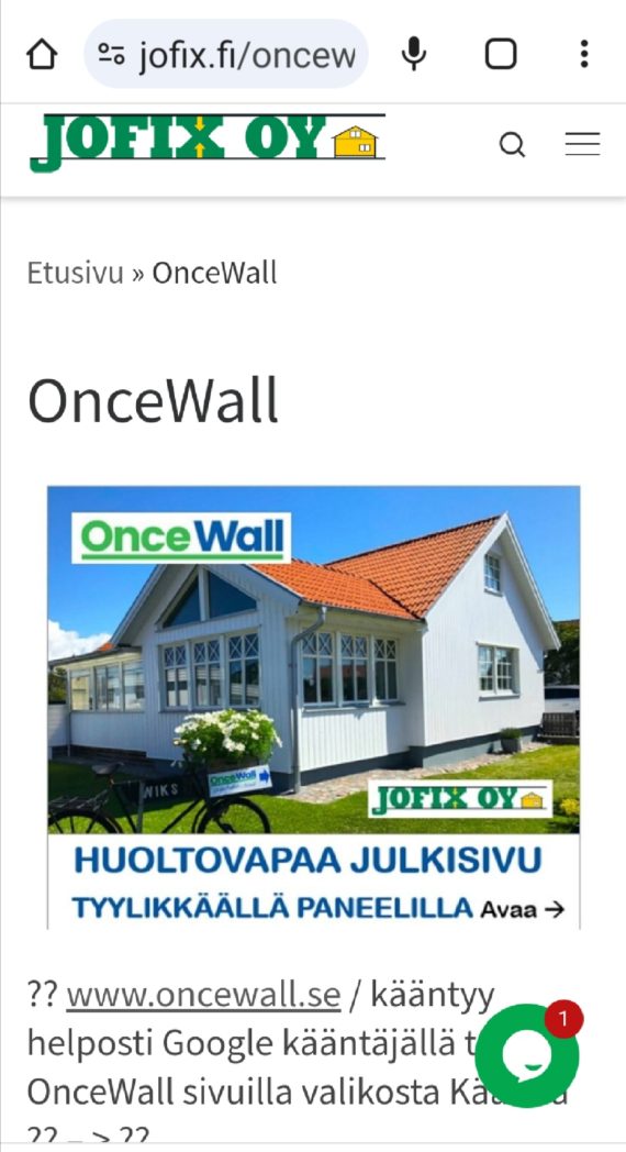 Myynti ja tyytyväisyys 4,7 / 5 TÄHTEÄ fi.trustpilot.com, samaan hintaan kuin puupaneeli. KYSY info@jofix.fi OnceWall www.oncewall.se / vaihda kieleksi SuomiMaahantuonti www.jofix.fi / oncewall.
