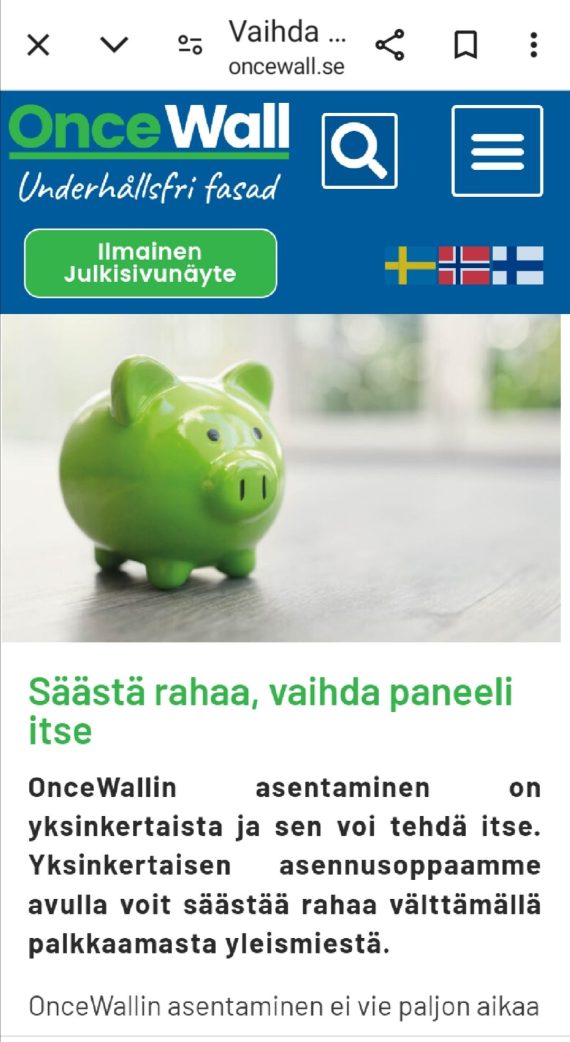 LINKKI, vain paina Suomen LIPPUA : https://oncewall.se/vara-produkter/ 🇫🇮 Nr 1 ♻️🏆🥇Katso tässä 🇸🇪 ONCE n paneeli vaihtoehdot ja historia, kysy lisää meiltä info@jofixfi, puh 0451260712. Muista vain että painat Suomen LIPPUA 🇫🇮 = tekstit kääntyy Suomeksi. OnceWall’s different types of panels nr1♻️🏆🥇🇸🇪. The facade for life. https://oncewall.se/vara-produkter/ LISÄTIETOJA 🇫🇮 Hakusanalla https://www.jofix.fi/uutiset/ taihttps://www.jofix.fi/oncewall/