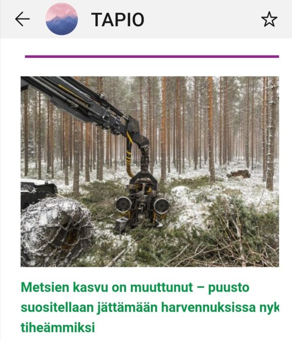 https://uutiskirje.tapio.fi/a/s/83533774-9259f74f112e16c8f2b68dfaed845e0e/2116084 Metsien kasvu on muuttunut – puusto suositellaan jättämään harvennuksissa nykyistä tiheämmiksi TAPIO Metsien kasvu on muuttunut – puusto suositellaan jättämään harvennuksissa nykyistä tiheämmiksi