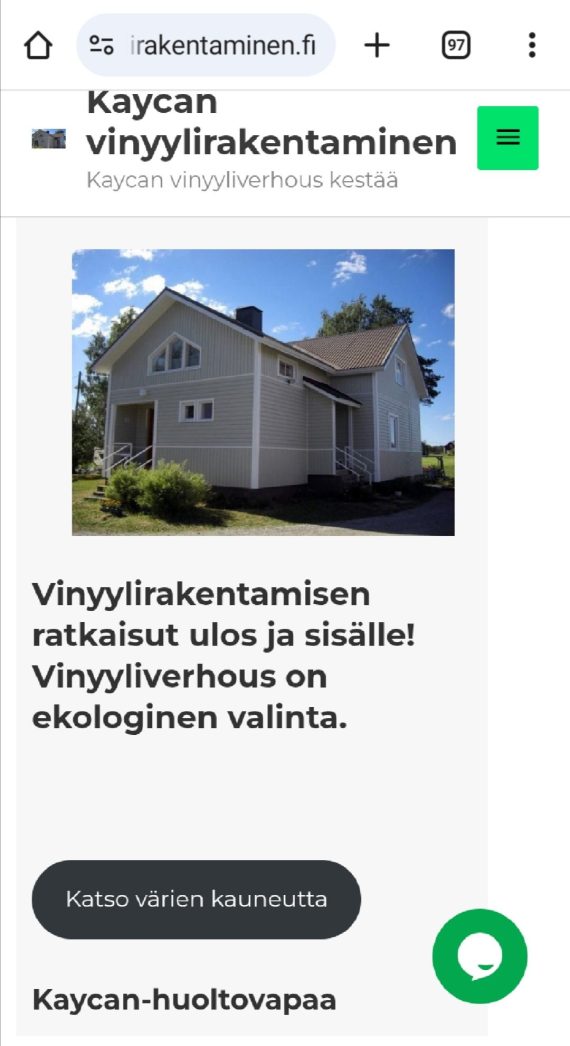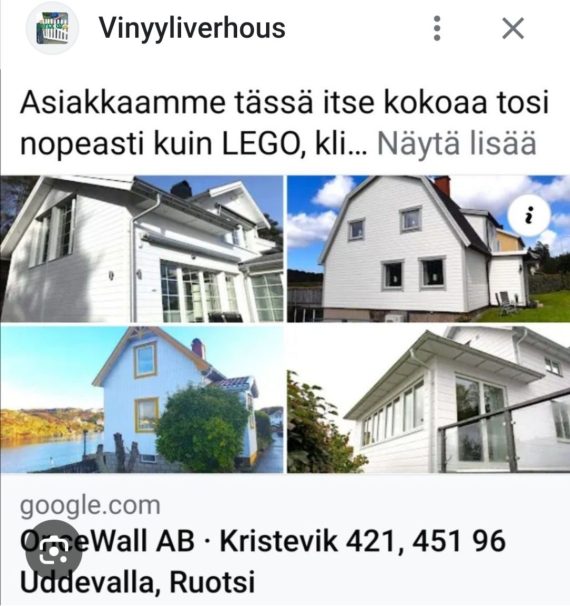 LINKKI : https://www.vinyylirakentaminen.fi/ PANEELI MATERIAALITIETOA : VERHOUS vain meillä voit valita Talon Ulkoverhous Vinyyli paneeli maailmasta (NaCl 60%+40%maakaasua – 0 % puukuitua)60 vuotta kehitetyn Ruotsalaisen paksun laadukkaimman OnceWall.se tai ohuen Kanadalaisen Kaycan.com. Hakusanoilla löytyy helpoiten kaikki faktat : https://www.jofix.fi/materiaalitietoa/