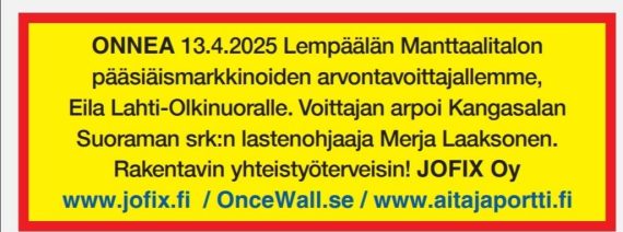 JOFIX eko malli AITA&PORTTI – OSOITTEITA KiertoTaloutta 30 v esim mm : KERAVAKyllikintie 9, Väinämöisentie 19TIKKURILA Osmankääminkuja 4TUUSULA mm Kellokoskentie, Rasikuja 2TAMMISAARI KråkholmenHANKO Luotsikatu 9KARJAA Syväpuronkatu 7,Suomela LehtiLOHJA Virkkalantie 25KIRKKONUMMI, tori Päiväkoti, Kuninkaantie 21TAMPERE mm Lampitie 2 b 4, Pirkkala Saunamäki, Harjutie 2, Hakametsän halli / bussipysäkki… KYSY lisää osoitteita, […]