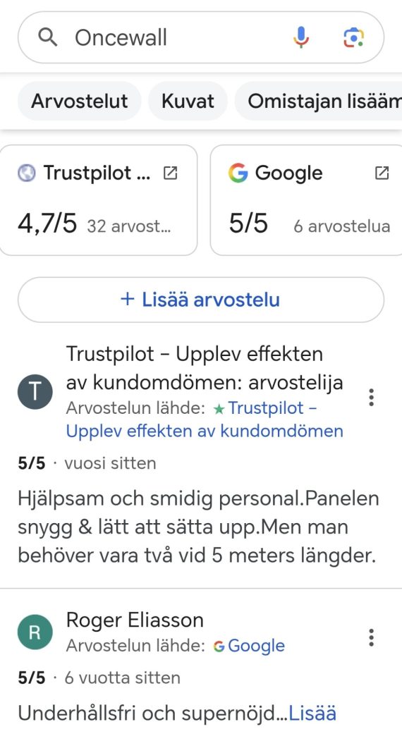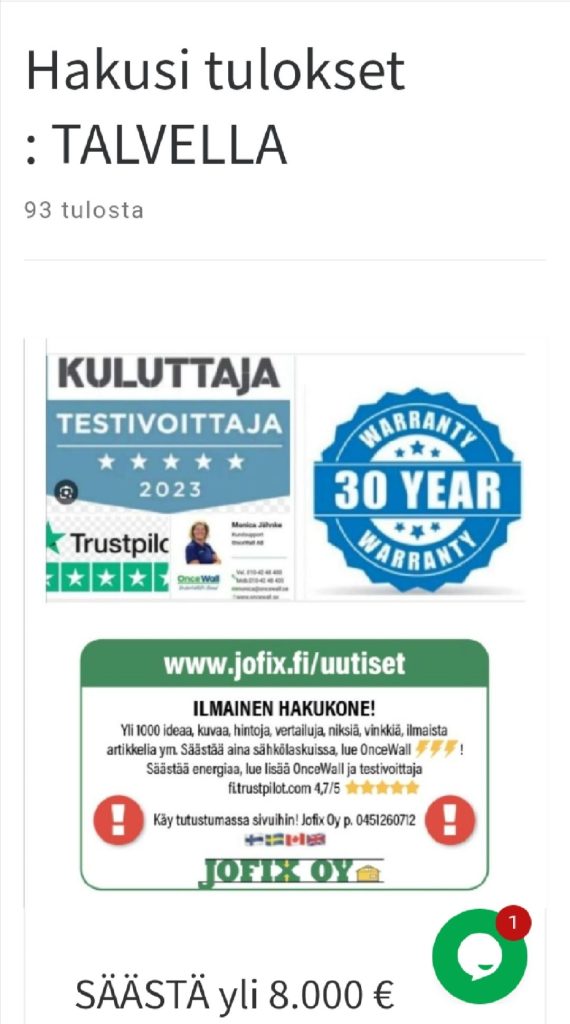 Linkki : https://www.jofix.fi/?s=ONCEWALL+ARVOSTELU