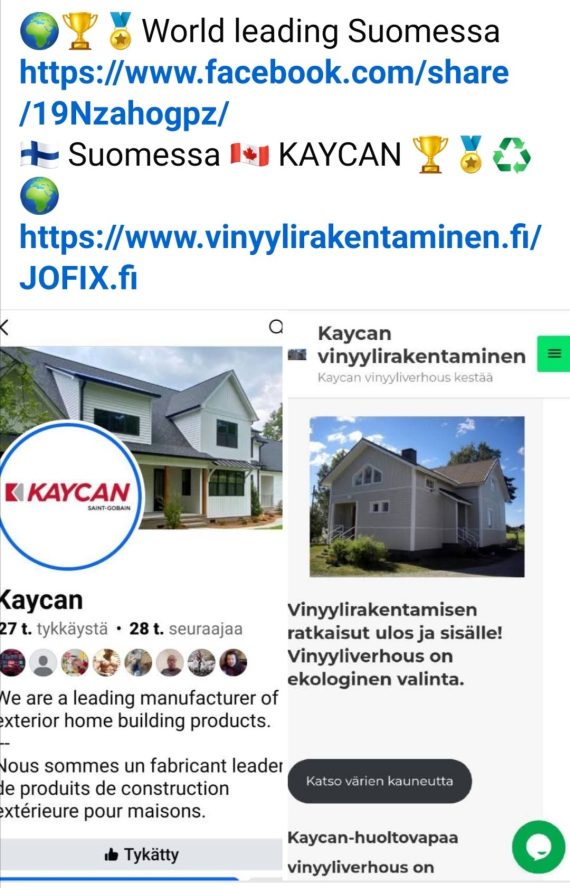 🌍🏆🏅World leading Suomessa https://www.facebook.com/share/19Nzahogpz/ https://www.facebook.com/share/19Nzahogpz/ 🇫🇮 Suomessa 🇨🇦 KAYCAN 🏆🏅♻️🌍 https://www.vinyylirakentaminen.fi/ https://www.vinyylirakentaminen.fi/ JOFIX.fi