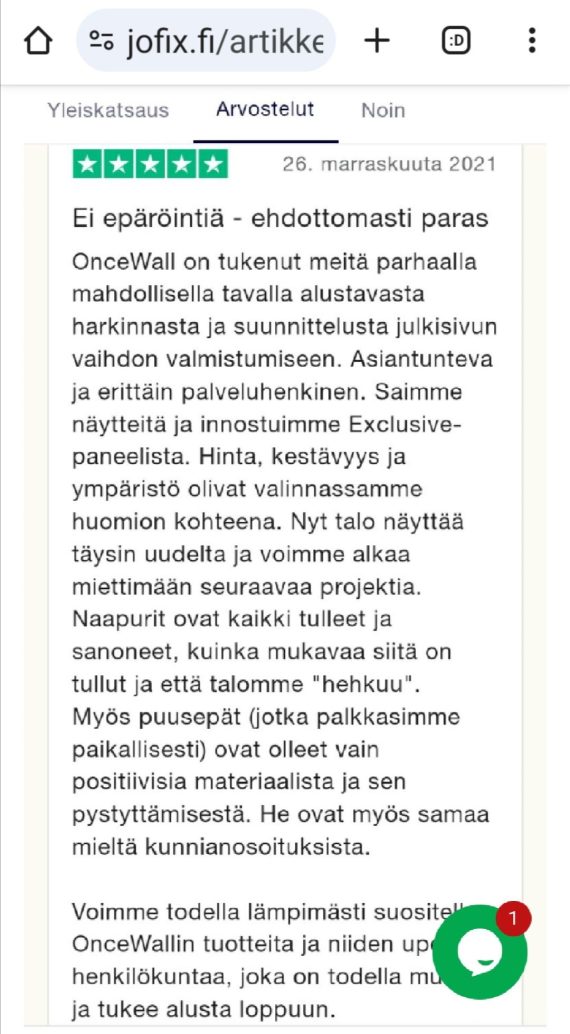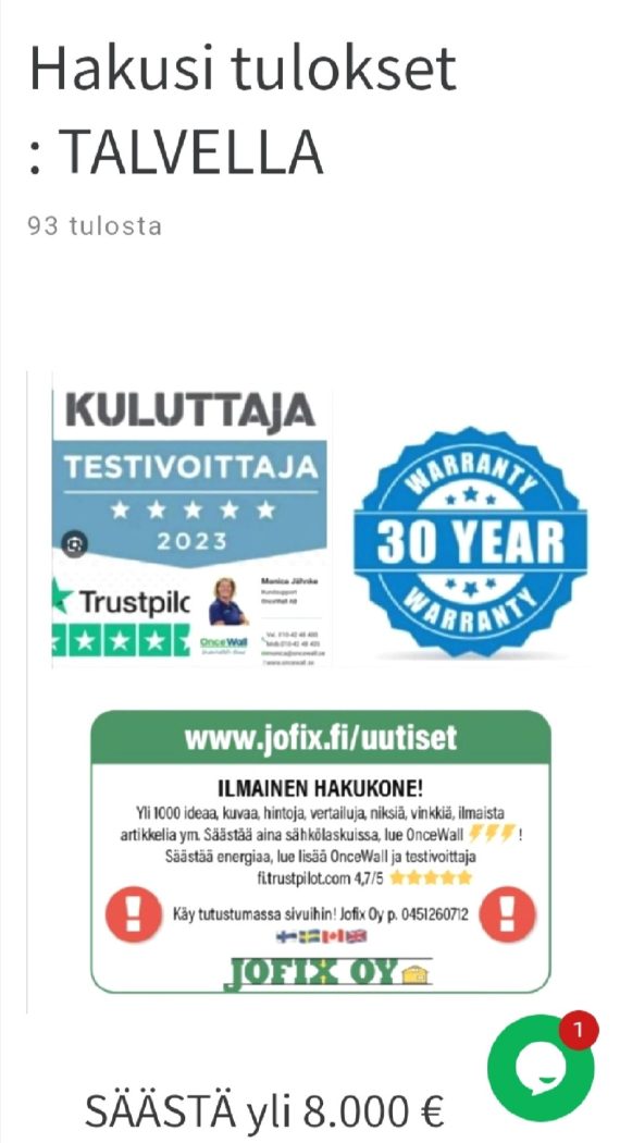 A) Supertyytyväiset asiakkaat 4,7/5 = 9,4/10, Google 5/5 fi. Trustpilot. com : https://fi.trustpilot.com/ OnceWall Pähkinänkuoressa : https://www.jofix.fi/oncewall/ B) Mitä lisäetuja tarjoaa OnceWall https://www.jofix.fi/?s=OnceWall+ENERGIA+ C) Lyhyt versio Kotisivut, SUOMEKSI : 1) Valikosta Käännä – > 2) paina ⚙️ – > 3) Lisää kieliä – > 4) klik Suomi ja teksti muuttui […]