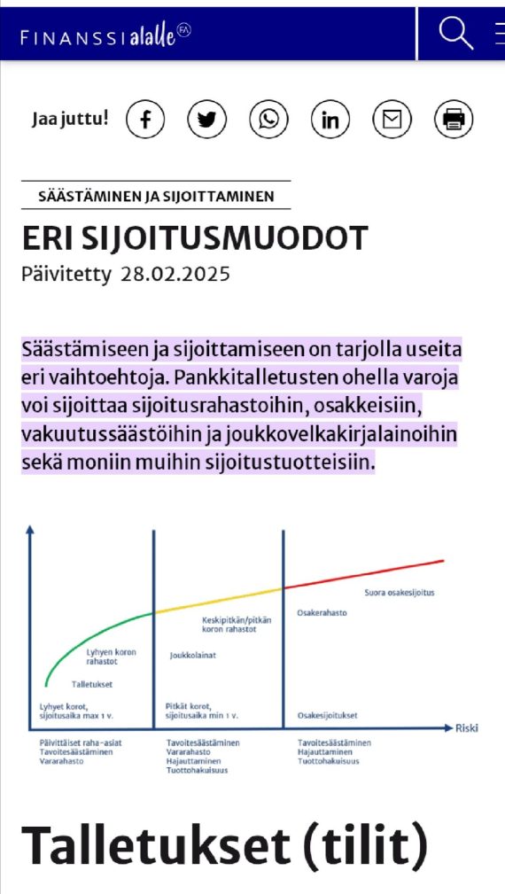 Linkki : https://www.jofix.fi/oncewall/ AI-yhteenveto Paras sijoitustuote riippuu sijoittajan tavoitteista, riskinsietokyvystä ja sijoitusajasta. Yleisesti ottaen indeksirahastot ja osakkeet ovat suosittuja vaihtoehtoja, mutta myös asuntomarkkinat voivat olla houkutteleva sijoituskohde pitkällä aikavälillä. On tärkeää hajauttaa sijoituksia eri omaisuusluokkiin riskien minimoimiseksi ja tuottojen maksimoimiseksi. Eläkesäästäminen on pitkäjänteinen sijoitusmuoto, joka kannattaa aloittaa mahdollisimman aikaisin. Rahastosijoittaminen on suosittu tapa […]