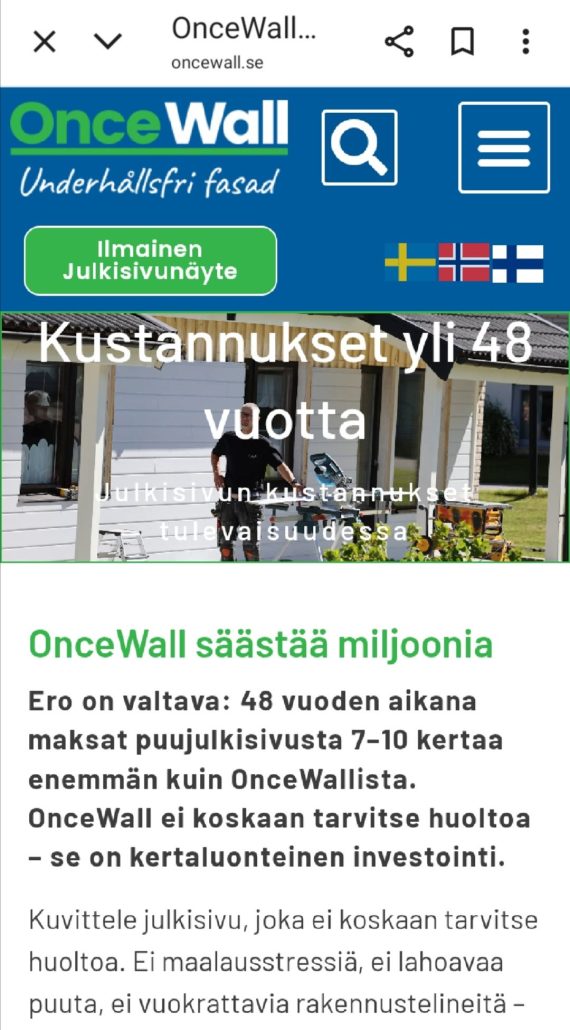 ↗️ Menestyksen muita syitä : https://www.jofix.fi/artikkeli/tassa-naet-syyn-miksi-puu-ei-kesta-ja-oncewall-kestaa-50-100-vuotta-muuttumattomana-puu-imee-ja-sailyttaa-vetta-oncewall-ei-siksi-heti-lisaetuna-30-vuoden-%f0%9f%87%b8%f0%9f%87%aa-tehtaantakuu-l/ Lisäedut https://www.jofix.fi/oncewall/ Vertailulaskelmat https://www.jofix.fi/ota-yhteytta/