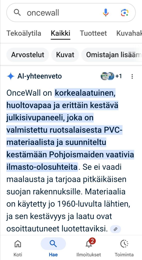 🇫🇮 🌍♻️🏆ILMAINEN ILMASTOTEKO : https://www.jofix.fi/?s=HIILINIELU+ https://www.jofix.fi/?s=HIILINIELU+ Faktat suomeksi – englanniksi odota ja Paina Vain Suomen 🇫🇮 LIPPUA : https://oncewall.se/miljovanlig-fasad/ AI-yhteenveto OnceWall-julkisivupaneeli on suunniteltu erityisesti Pohjolan vaativiin ilmasto-olosuhteisiin, ja se on valmistettu ruotsalaisesta PVC-materiaalista. Se kestää erittäin pitkään ilman huoltoa ja tarjoaa pitkäikäisen suojan säältä.