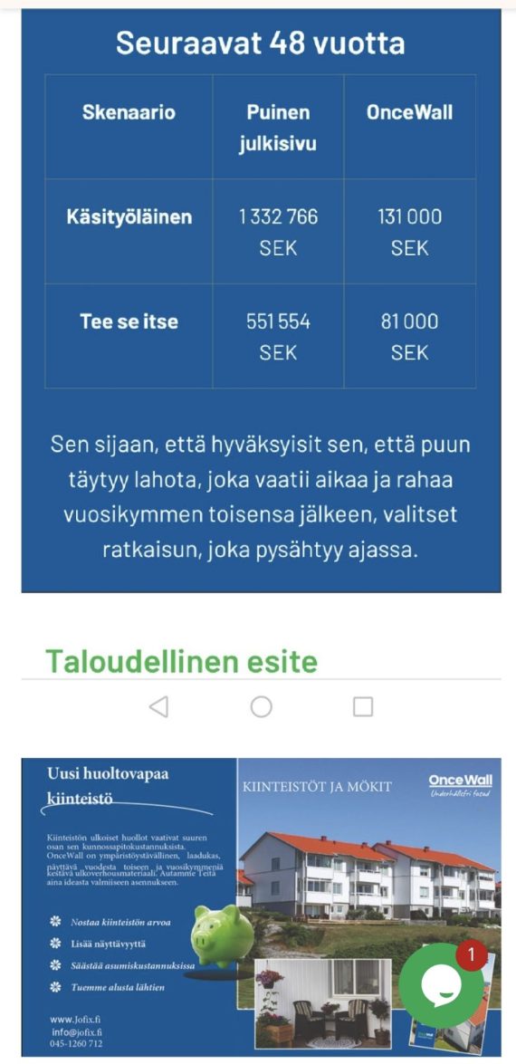 LINKKI ABC : https://www.jofix.fi/artikkeli/hinta-talon-ulko-verhoukselle-vinyylipaneeli-vinyyliverhous-hinta-alk-1099-eur-me-nelio-eria-vari-haettavissa-suoraan-varastosta-tiedustelut-infojofix-fi-%f0%9f%93%9e%f0%9f%91%b7/ Taulukko : AMMATTIMIES ASENTAA & MAALAA, KORJAA ym ym Ruotsin Kruunut € Euroiksi : Tässä erotus Puu 121.292 € / OnceWall 11.927 € eur = OnceWall säästää 109.365 € ! Puu verhous hinta kruunuissa 1.332766 on = 121.292 € euroa OnceWall pvc verhous hinta 131. 000 […]