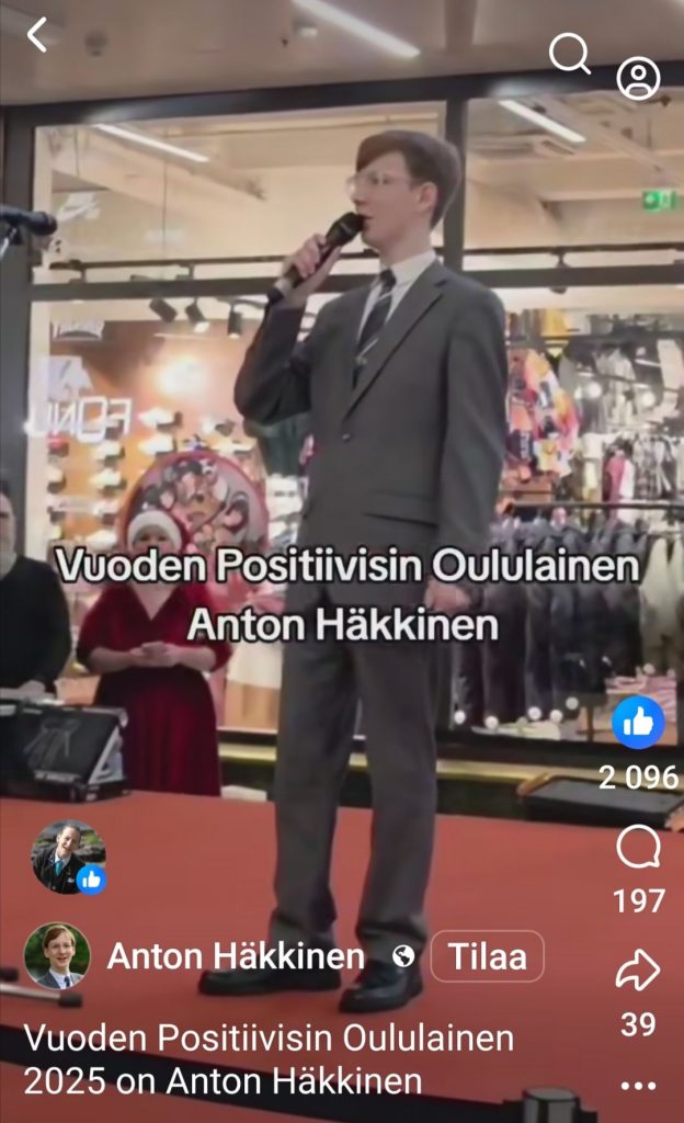 đŸ‡«đŸ‡źđŸ†đŸ… Onnittelemme upeaa Antonia! Arvojamme on MYÖS VETERAANITYÖ jota tukemamme ensi levytys  Lahjakas laulaja Anton HĂ€kkinen tekee super ansiokkaasti. Anton on nyt Vuoden Positiivisin Oululainen. LisÀÀ JOFIX Oy n arvoja hakukoneella Hakusana : Arvojamme mm UNICEF, SPR, MAF.fi, SyöpĂ€lapset, Opaskoirat, Lasten liikenne kirjat, Poliisi ja Palomiesurheilu, Naisjalkopalloilu ym… : https://www.jofix.fi/?s=ANTON+H%C3%84KKINEN+
