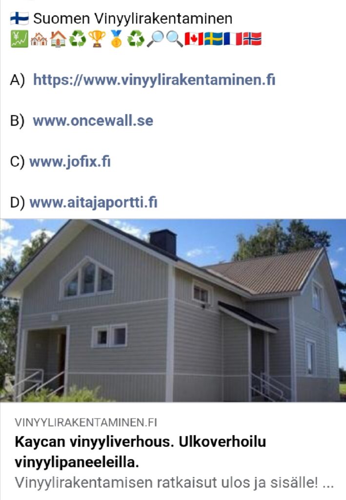 A) Hakusana esim Asiakkaamme puhuvat https://www.jofix.fi/?s=ASIAKASTYYTYV%C3%84ISYYTT%C3%84 B) Asennus https://www.jofix.fi/artikkeli/20360/ C) Kysy tarjouksia me ulkopaneeli, sisäpaneeli, Aita, Portti, Sokkeli, muu : https://www.jofix.fi/ota-yhteytta/ Ota […]