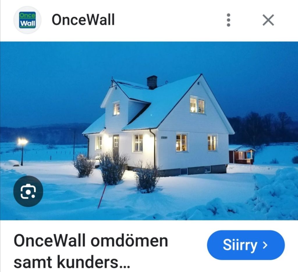 OnceWall kaikkialla Instagram, Pinterest, Facebook, YouTube, Vimeo… 1000 kuvia ja havainto, esimerkki videoita kymmenittĂ€in. OnceWall on suosituin Ulkoverhous fi.trustpilot.com, myynnin kasvu vain jatkuu 2024 + 33 %. Nyt myös Sisustuslevyt myös mĂ€rkĂ€tiloihin sekĂ€ lattialistat, oven dekore listat, sisĂ€katot. OnceWall on ainoa maapallolla tuotantoa, kehitystĂ€ Ruotsissa jo yli 60 vuotta.