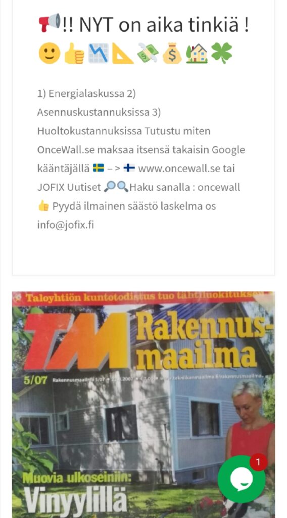 KUTEN OnceWall kin kestää 50 + vuotta / elinikäinen – siirry sinäkin 2000 LUVULLE ja vaihda vanha Energiaa vuotava Talon kuin Talon […]
