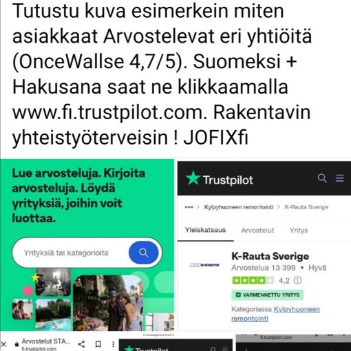 ERINOMAINEN 4,7/5 TÄHTEÄ OnceWall ™️♻️ JOFIXfi ™️ https://fi.trustpilot.com/review/oncewall.se