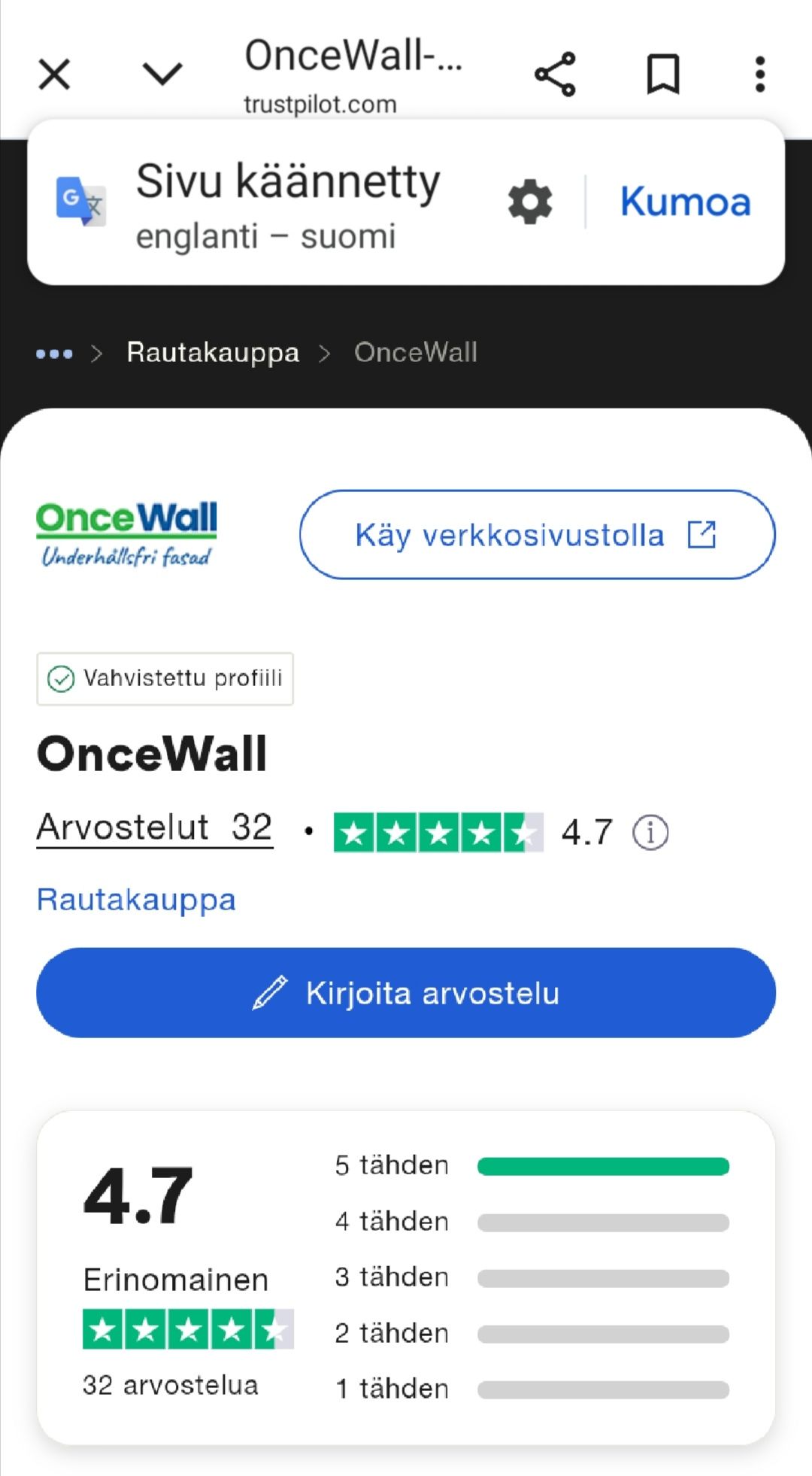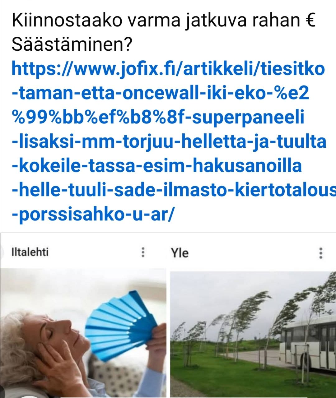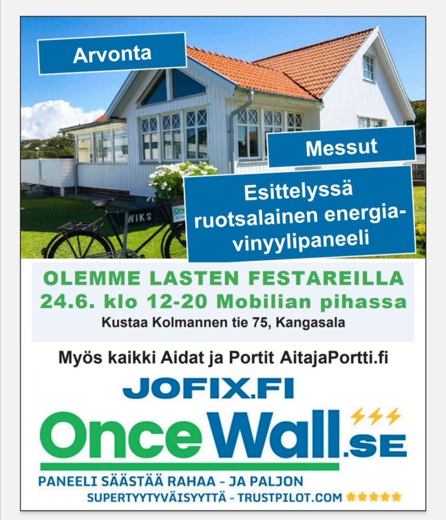 👍🏻 Hei ! ! NYT ensi ESITTELY OnceWall Superpaneeli 24.6 Kangasala, Mobilia klo 12 – 16  Tervetuloa tutustumaan ! Ruotsalainen OnceWall Superpaneeli mm 1) Kestoikä jopa 100 v 2) 0 % puuta / Hiilijalanjälki 3) Energia ihme 4) Talous ihme 5) 60 v Supertyytyväisyyttä, Googlaa nyt  fi.trustpilot.com / OnceWall. Google Arvostelu 10/10 ja Trustpilot.com paras materiaali 9.4/10 ! Tai sovi oma  esittely info@jofix.fi / puh 0451260712. Kaikki LINKISTÄ :