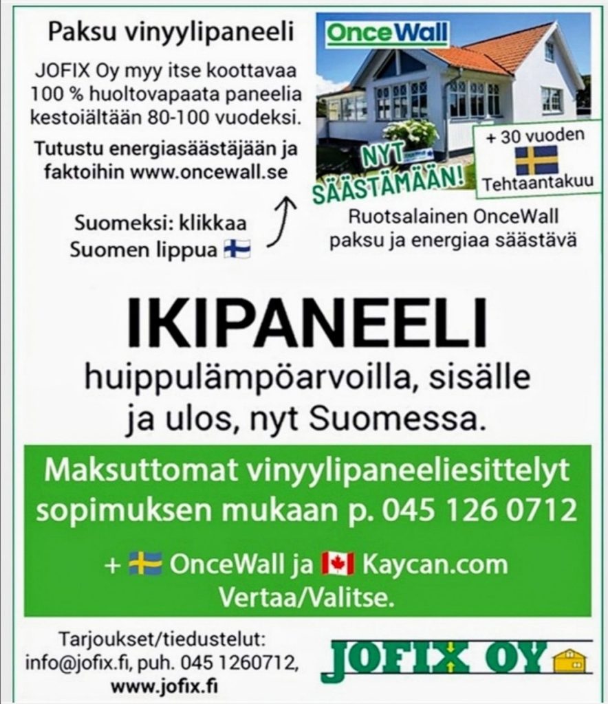 MILJOONIEN KULUTTAJIEN SUOSIOSSA Tiesitkö? Miljoonien kuluttajien suosiossa on Arvostelu foorumi Tanskalainen Kuluttajasivusto jossa Suomalainen HAKUKONE. Testivoittaja OnceWall.se 4,7/5 TÄHTEÄ. Trustpilot.com on Kuluttajien suosiossa suosituin ÄÄNITORVI – miljoonia kävijöitä & yritys / esim K-Rauta Finnair Bauhaus Byggmax Fazer / tuotearvosteluja, suomeksi fi.trustpilot.com ; Hakusana oncewall / jo 30 arvostelua suomeksi (4,7/5 TÄHTEÄ) tai www.jofix.fi Uutiset Hakusana oncewall
