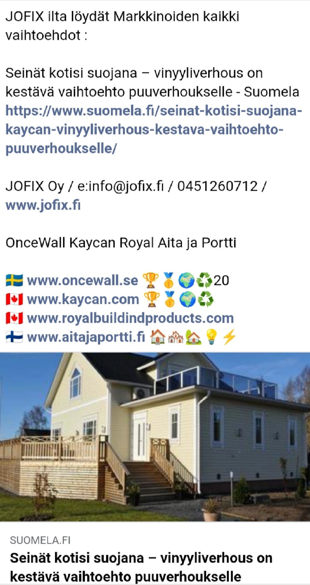 JOFIX fi toimii kuin nettikauppa, tarvitsemme vain kuvan aidasta & talosta â pari mittaa, lĂ€hetĂ€mme vĂ€rimallit ja sovimme sopuhinnan â toimitukset Korona […]