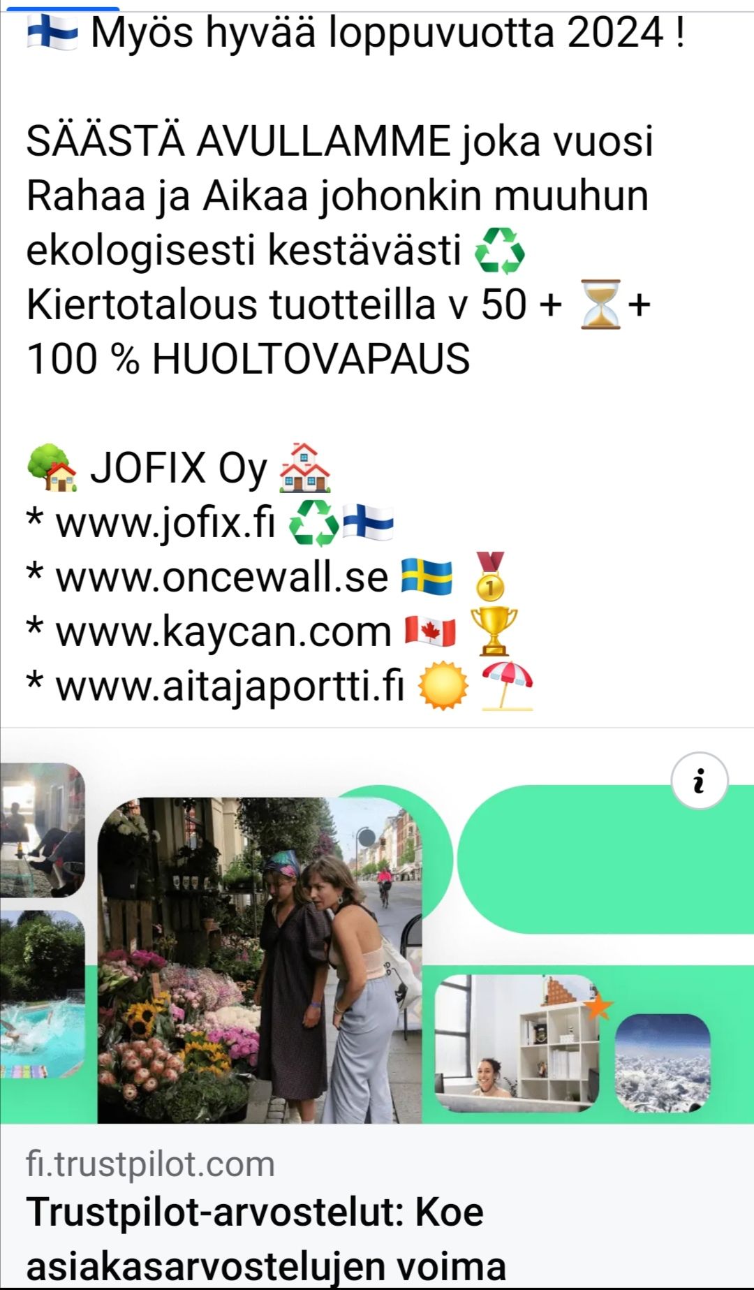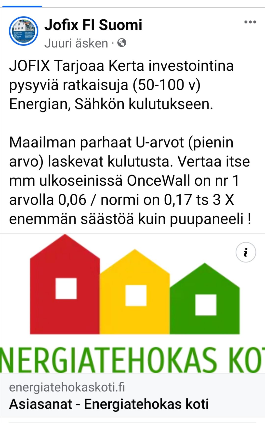 ASTA 2 – 4.2 Asumisen Messut – 2024 Huippu Uutuus JOFIX Oy tuo Suomeen energiaa säästävää ♻️ Ruotsalaista iki paneelia – TESTIVOITTAJA 4,7 / 5 Tähteä Trustpilot. com – OnceWall.se teksti kääntyy vain klikkaamalla Suomen lippua kaikki suomeksi :