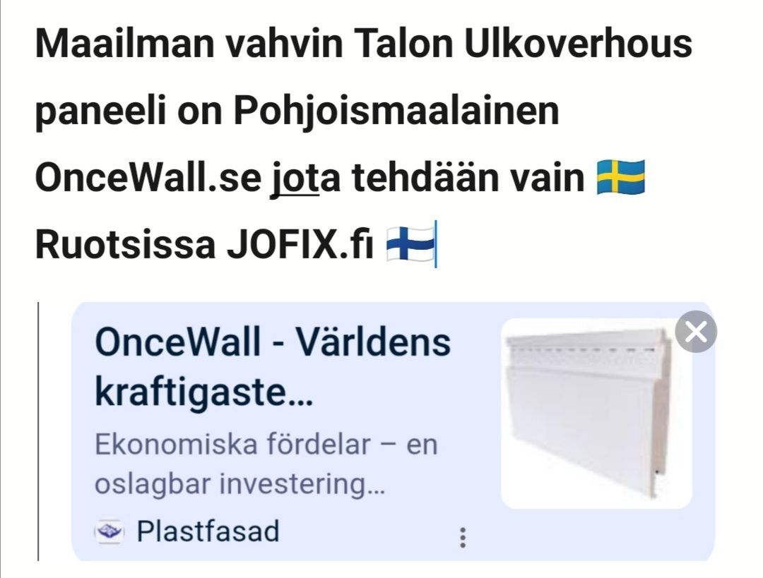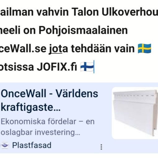 ? Tiesitkö tämän ⚠️👍UUSI SÄÄSTÖ VINKKI! ETSITKÖ järkevintä Talon Ulkoverhous ratkaisua? Meiltä löytyy kaikki vaihtoehdot / voit verrata laatuja helposti / hintoja – JOFIX on mistä valita ! Kysy info@jofix.fi / puh 0451260712 WhatsApp