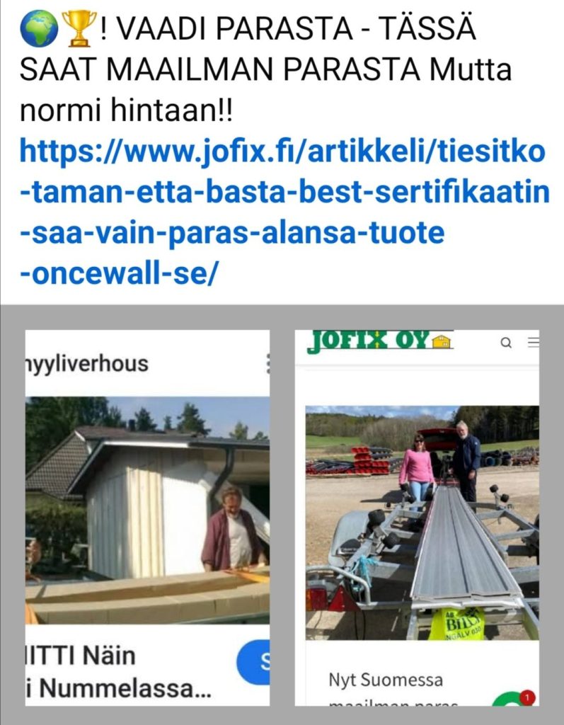 !!! Tulossa HELLE ENNÄTYKSIÄ – Tiesitkö, että OnceWallse n bonus Talon kuin Talon paksu ulkverhous ei ime kuumuutta kuten puupaneeli vaan heijastaa kuin peili poispäin talosta. Lue esimerkkejä linkistä ABC!