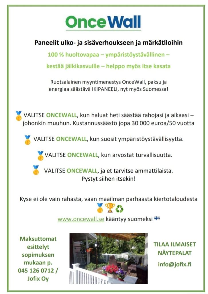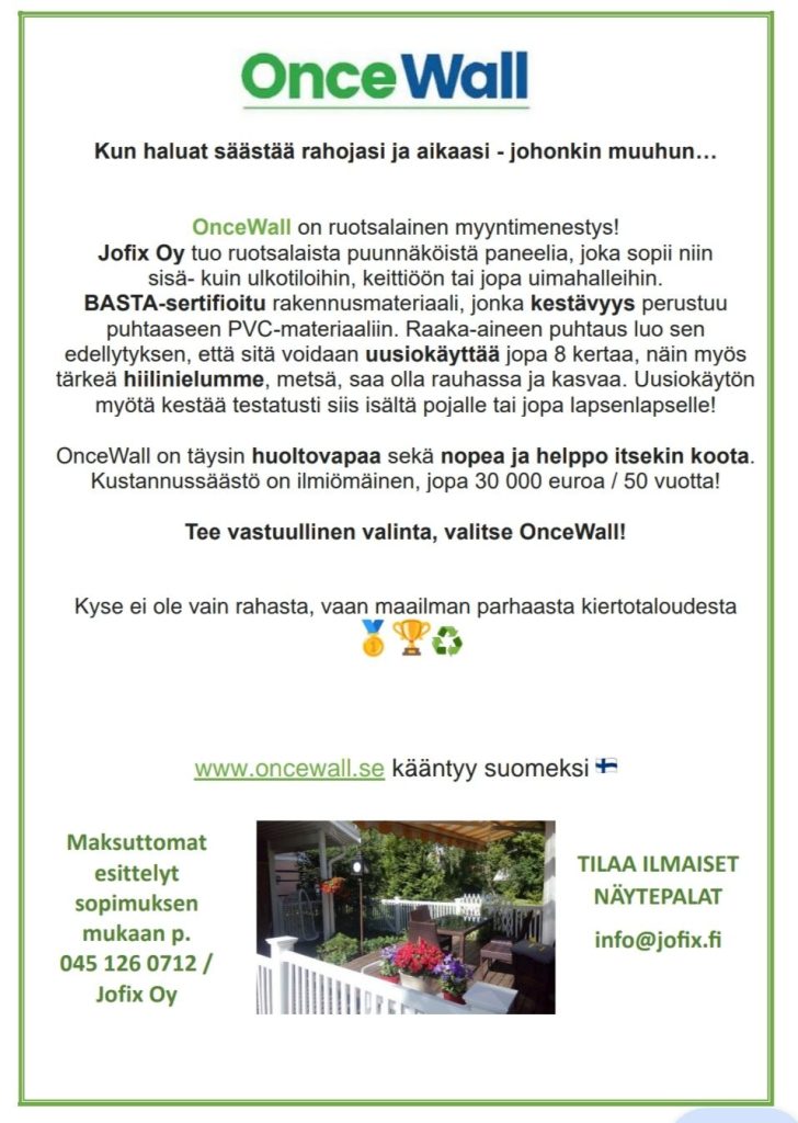 2024 VALITSE MIELEISESI vain meillä www.jofix.fi / OnceWall oncewall.se LIPUSTA Suomeksi TAI www.vinyylirakentaminen.fi Kaycan KAYCAN.com