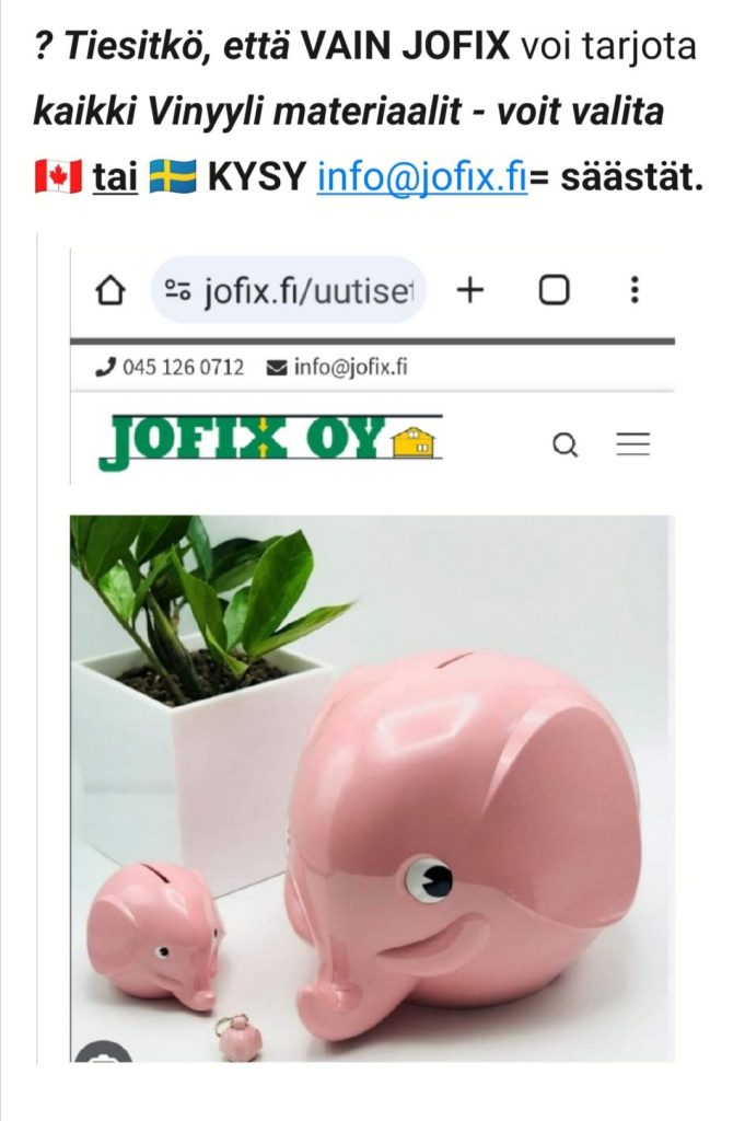 Haluatko vertailla? Haluatko säästää ? Haluatko sinulle mieleisimmän? Suomessa vain meillä voit vertailla / valita eri tehtaiden tuotteita. KYSY e: info@jofix.fi : ☝️???????? KYSY – NIIN TIEDÄT – ET JÄÄ ” JÄLKI JUNAAN ” ???? Ota yhteyttä