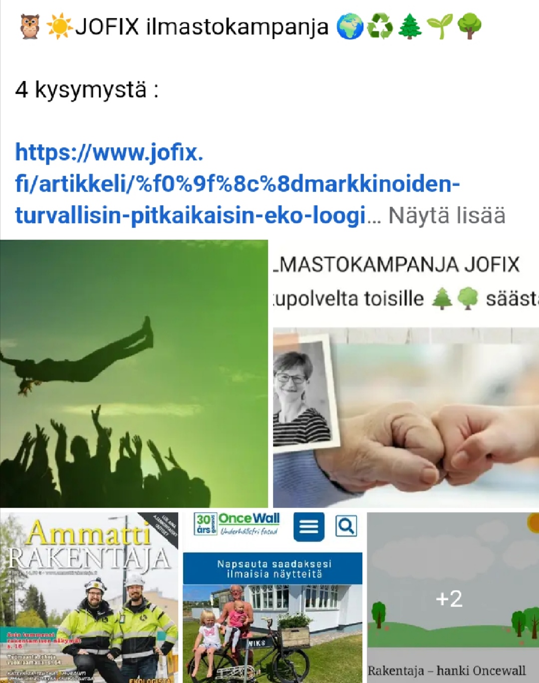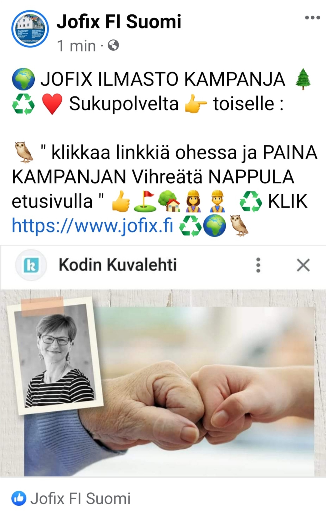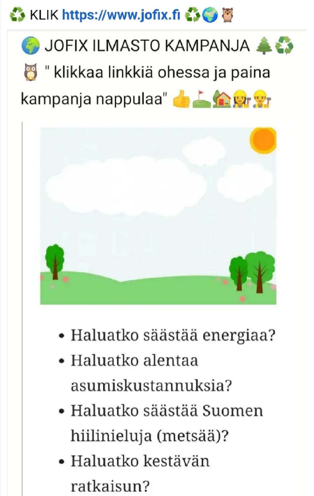 HIILINIELU 🌍♻️🌲🌳🏡🦉🏆🥇& JOFIX ILMASTO KAMPANJA vähentää 🌲🌲🌲 kuusipuun hakkuita :