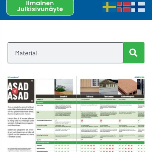 A) Materiaalivertailu OnceWall muut / materiaalit, suomeksi vain paina Suomen 🇫🇮 LIPPUA : https://oncewall.se/?s=Material B) Paneelimallit,suomeksi vain paina Suomen 🇫🇮 LIPPUA : […]