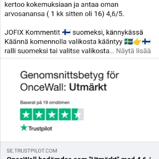 OnceWall Nyt lisää, 26 OnceWall asiakasta kertoo kokemuksiaan ja antaa oman arvosanansa ( 3 kk sitten oli 16. Oli 4,6) 4,7/5. JOFIX […]