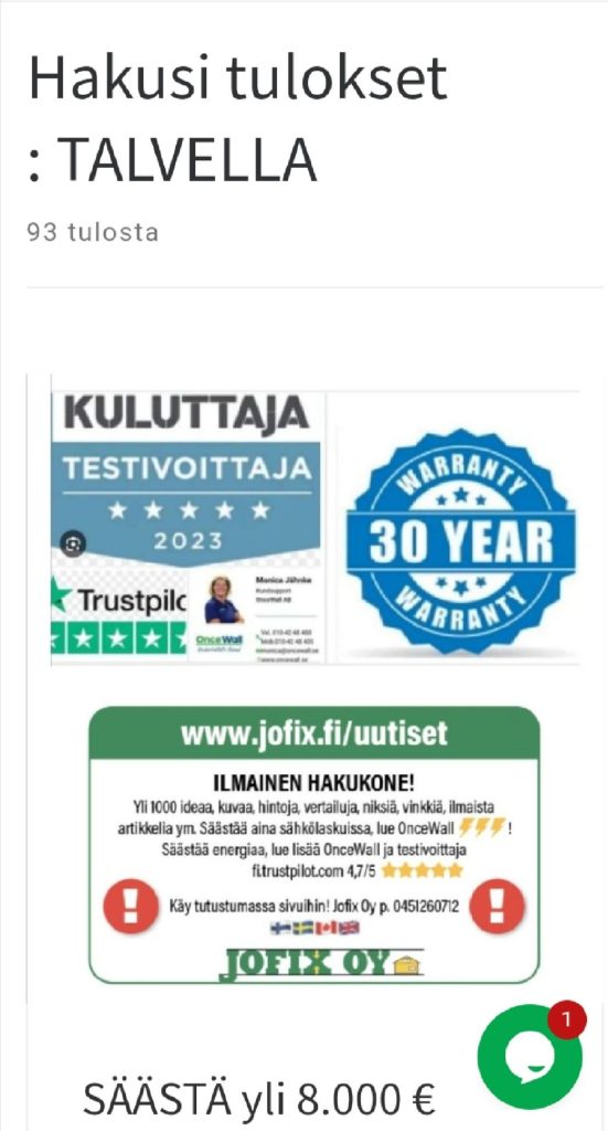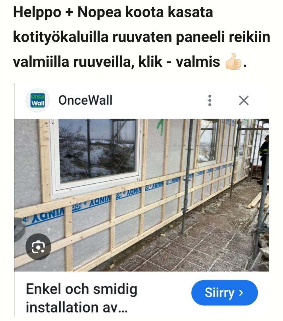 ? Tiesitkö tämän – KESÄMÖKKI UUDEKSI halvemmalla kuin puuverhous ( ++ 30 vuotta laskut 0 €) jopa Viikossa, vaikka talkoilla – Ruotsalainen OnceWall on supernopea koota kotityökaluilla  OnceWall rosteri ruuveilla (ei naula  jälkiä ym), 30 vuoden Takuu (elinkaari + 70 vuotta) + Supertyytyväisyyttä fi.Trustpilot.com ! Katso itse Google Hakusanalla – ” OnceWall sommarstuga ” / Kuvahaku ja OnceWall installation. Lue lisää :