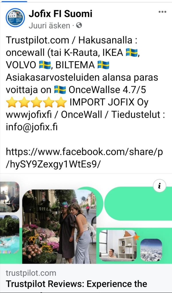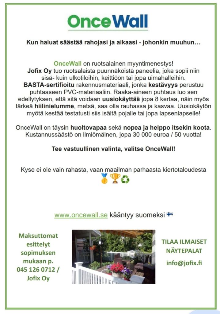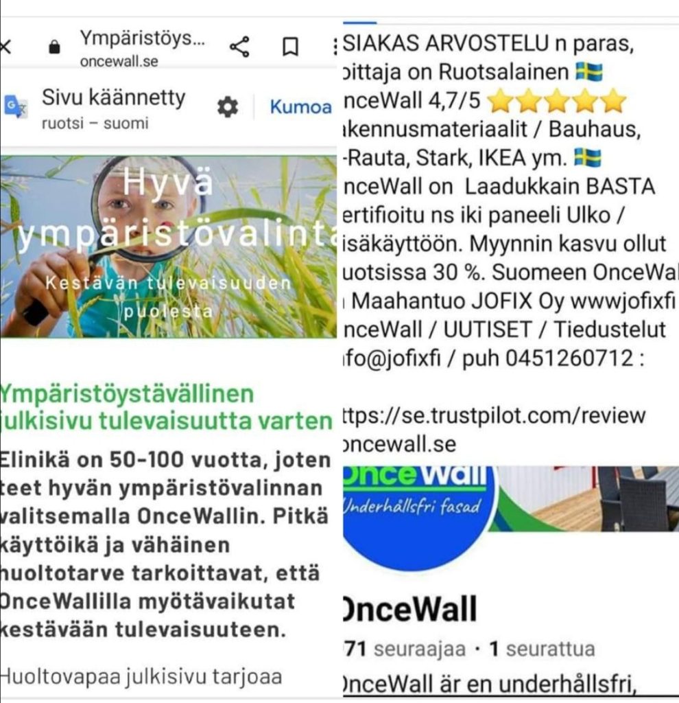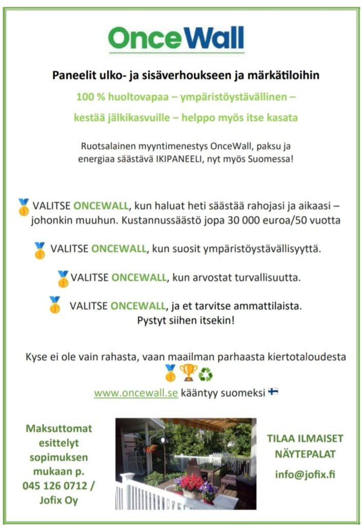 Tarkista itse kaikki faktat ruotsalaisesta tuotteesta suomeksi vain www.oncewall.se sivulla paina SUOMEN lippua ????