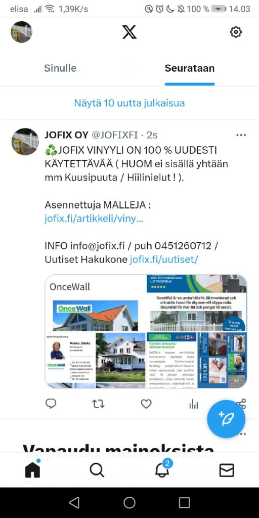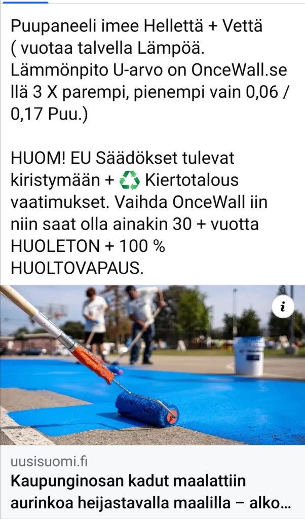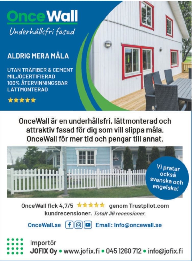 HUOM! EU Säädökset tulevat kiristymään + ♻️ Kiertotalous vaatimukset. Vaihda OnceWall iin niin saat olla ainakin 30 + vuotta HUOLETON + 100 % HUOLTOVAPAUS.