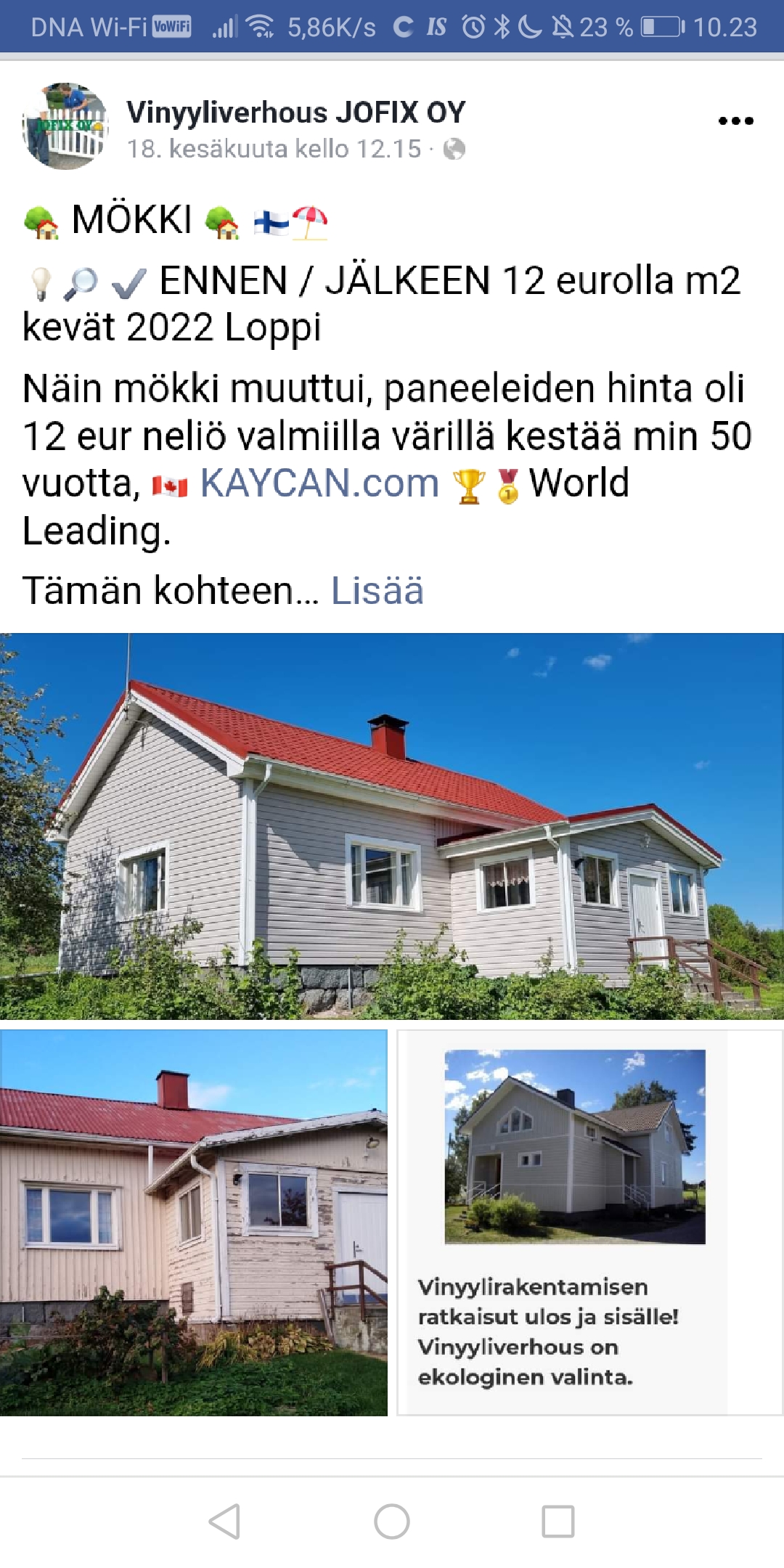 Tämäkin mökki muuttui, katso millaiseksi + 100 muuta ennen / jälkeen ESIMERKKIÄ – JOFIX lla on sinulle 👩‍🏫 Arkkitehti – katso miten Talon Mökin…ym ilmettä / myyntiarvoa kohottaa alkaen jopa vain noin tonnilla 1000 eur + 100 m2 Talon Ulkoverhous 🏡👩‍🏫👉⏳⏱️🏆🥇🇨🇦
