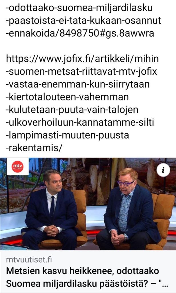 Älä maksa turhasta. Säästä Suomen metsiä. Torju Ilmasto haittoja. Tue hiili nieluja. Torju hellettä. Torju vetoa. Palontorjuntaa VTT testit. Edistä ja ole […]