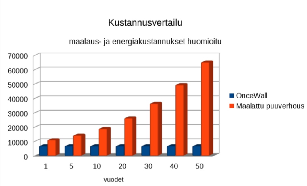 Tulos = SÀÀstöÀ ulkoverhouksesta  0.17 / 0,06 OnceWall samalla seinÀllÀ = on siis 3 x parempi