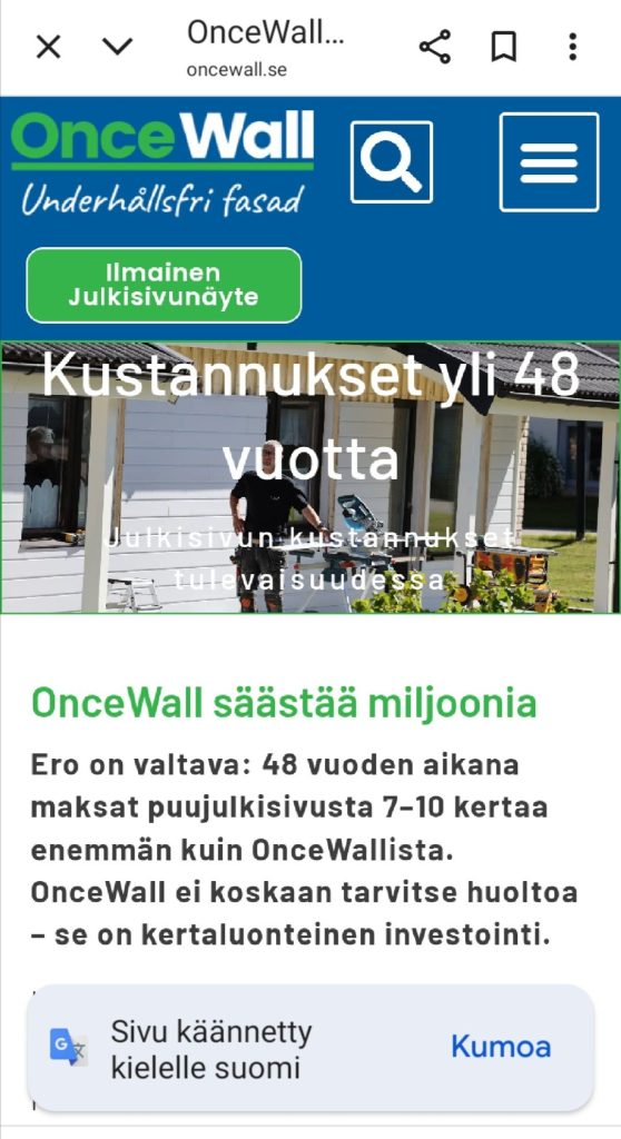 OnceWall on siten investointi, joka vÀhentÀÀ merkittÀvÀsti yllÀpitokustannuksia ja lisÀÀ kiinteistön arvoa.
