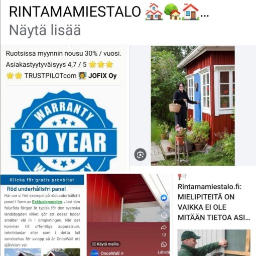 RUOTSI Ruotsissa KEHITETTY ja valmistettu Uddevalla ssa – Tehtaantakuu 30 vuotta HUOLETTA, huollotta, maalaamatta ja samaan hintatasoon kuin valmis vastaava puuverhous.