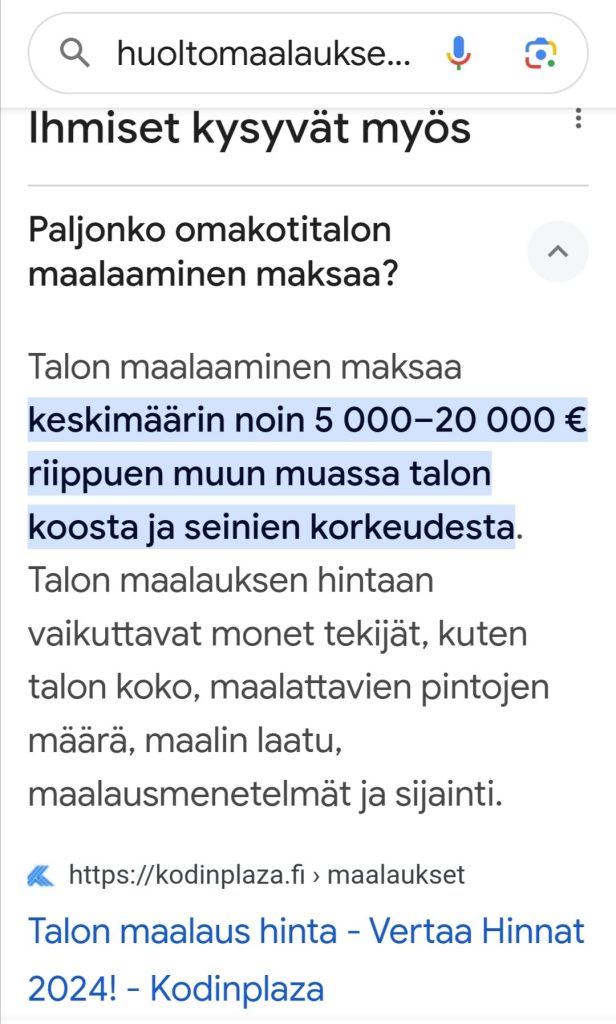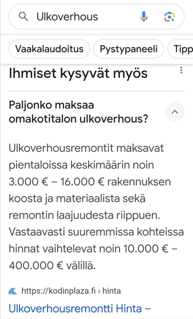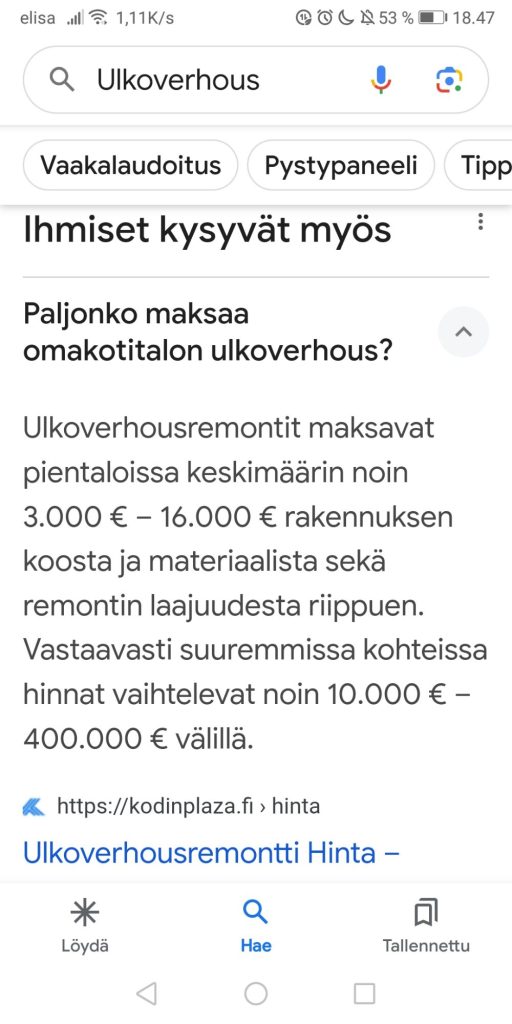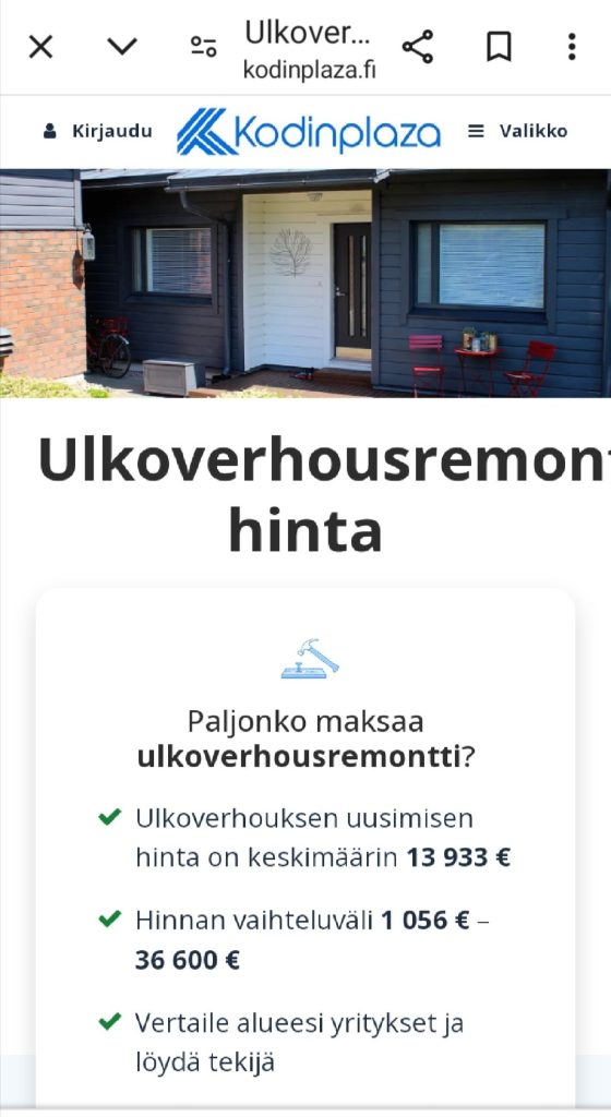 VUOSI 1 keskiverto Talon Ulkoverhous UUSITAAN 14.000 eur (Kodinplaza.fi)
