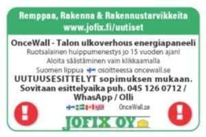 SUOMEKSI ♻️ www.jofix.fi / OnceWall ja suomeksi vain PAINAMALLA Suomen LIPPUA www.oncewall.se + lippu. Kirjalliset julkiset Asiakasarvostelut os fi. Trustpilot.com / oncewall 4.7/5 ™️. Kysy e:info@jofix.fi / puh 0451260712.