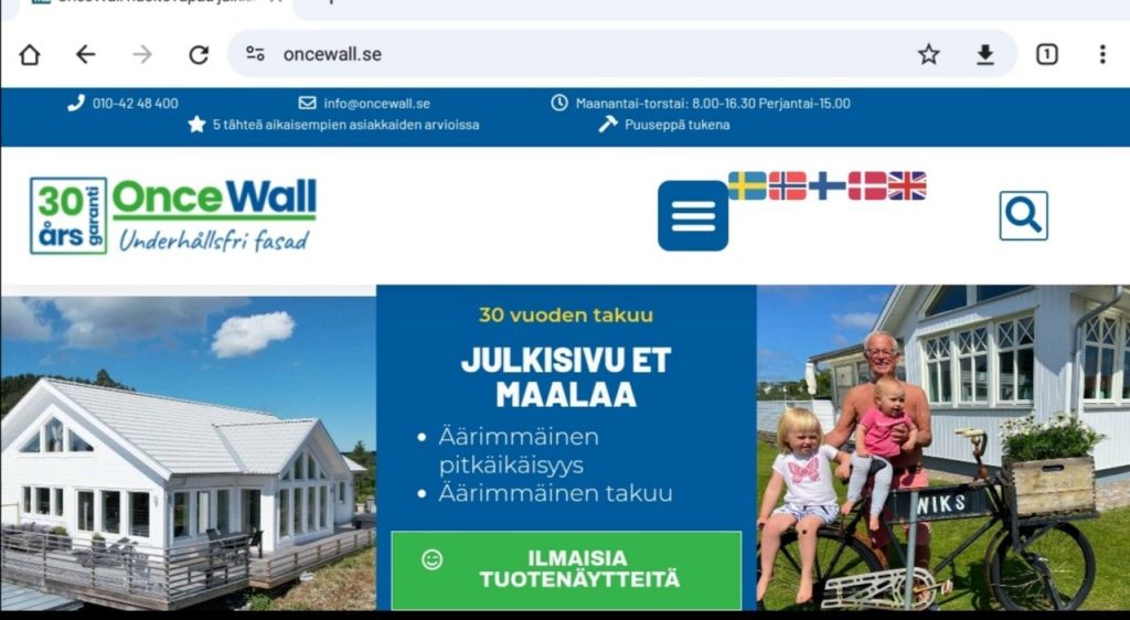 www.oncewall.fi / Käännä valitse Valikosta kieli SUOMI.