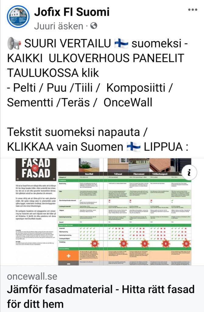 Lisäksi ! SUURI VERTAILU Suomen lipusta napsauttamalla suomeksi – KAIKKI ULKOVERHOUS PANEELIT TAULUKOSSA klik