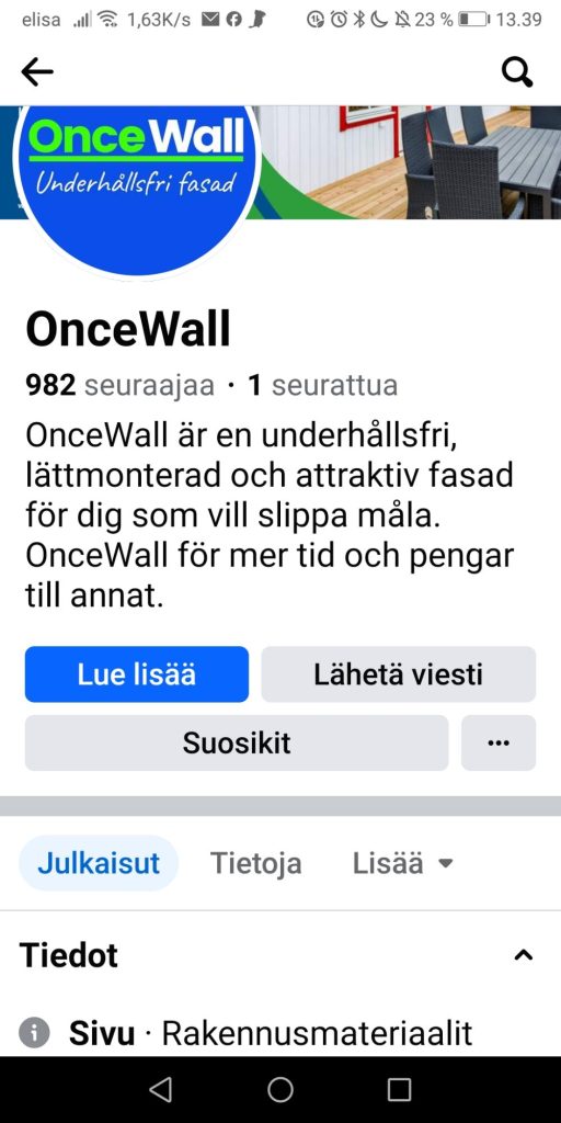 - Pelti / Puu /Tiili / Komposiitti / Sementti /Teräs / OnceWall