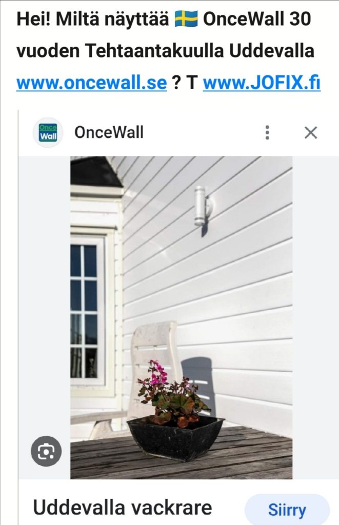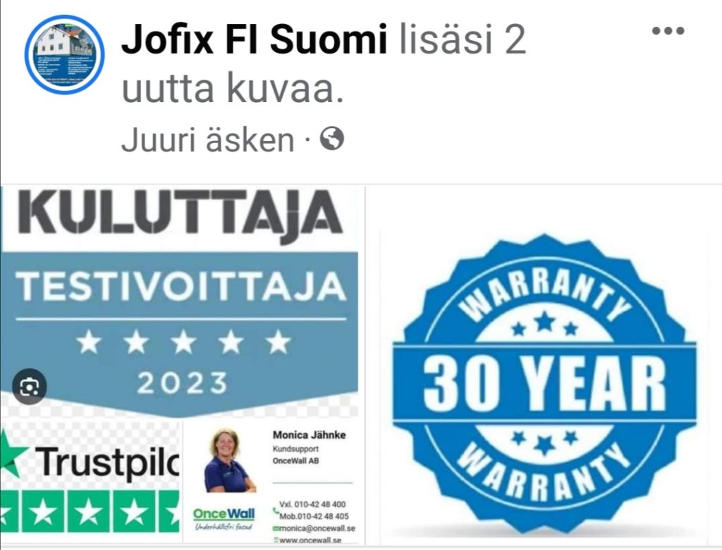 Maahantuonti Koko Suomeen JOFIX Oy www.jofix.fi / OnceWall. Tiedustelut/Tarjoukset info@jofix.fi, Puh 0451260712 Olli