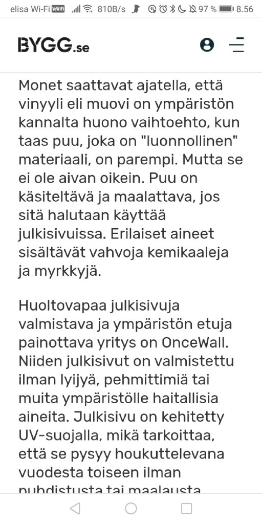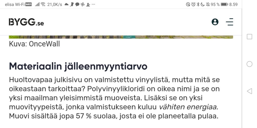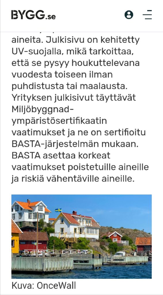 - OnceWall sÀÀstÀÀ 3 x enemmÀn energiaa kuin Puu paneeli