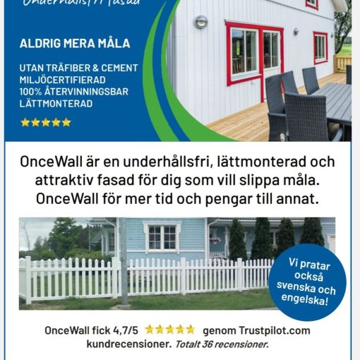 OnceWall myynti + 33 % / Supertyytyväiset asiakkaat fi.trustpilot.com (maailmalla muovi Ulkoverhouksen osuus on ollut jatkuvasti jo kymmeniä vuosia tasaisesti n 33 % – 80 % / puu paneelin osuus enää n 7 %)