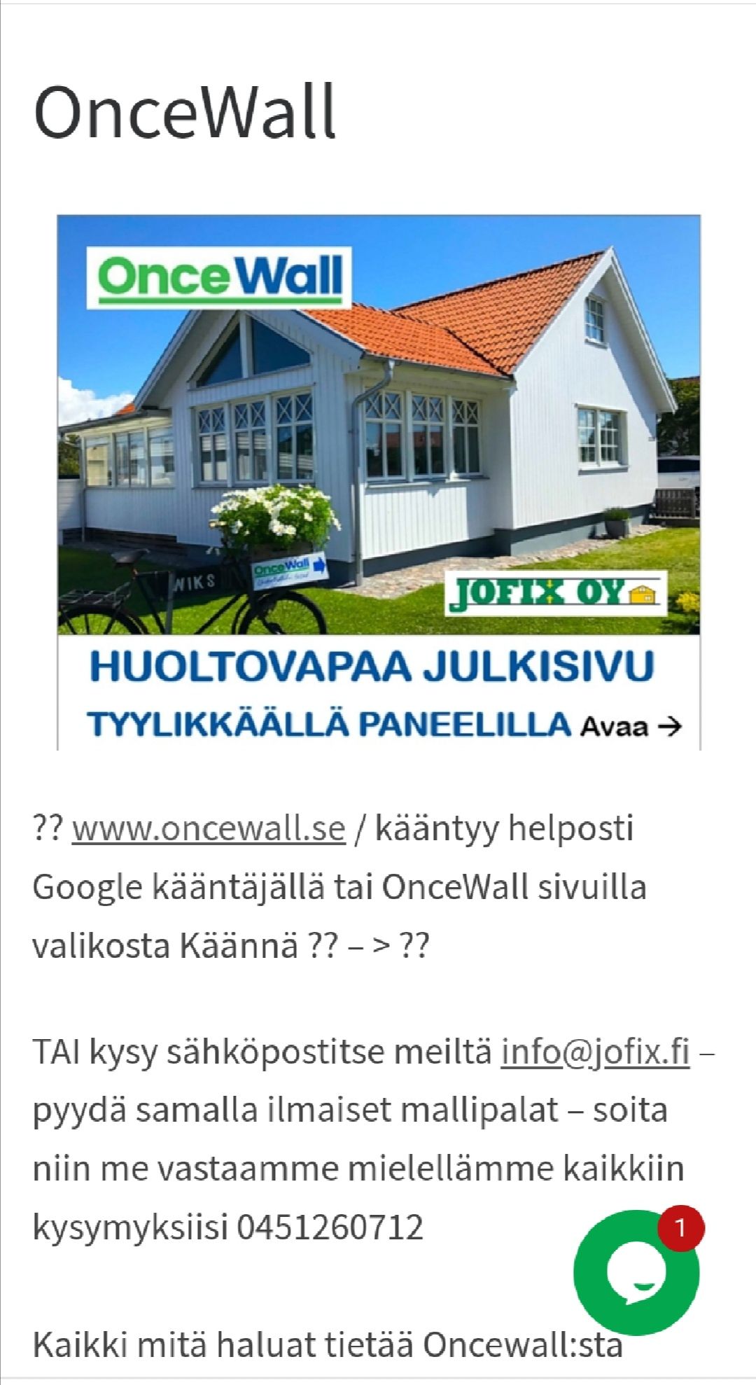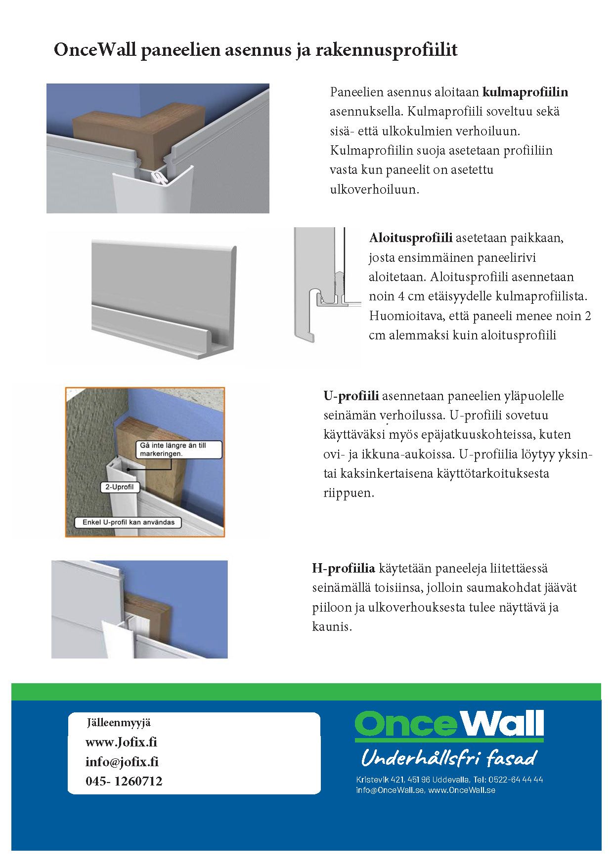 KAIKKI OnceWall ista suomeksi, Maahantuonti JOFIX Oy ; https://www.jofix.fi/oncewall/