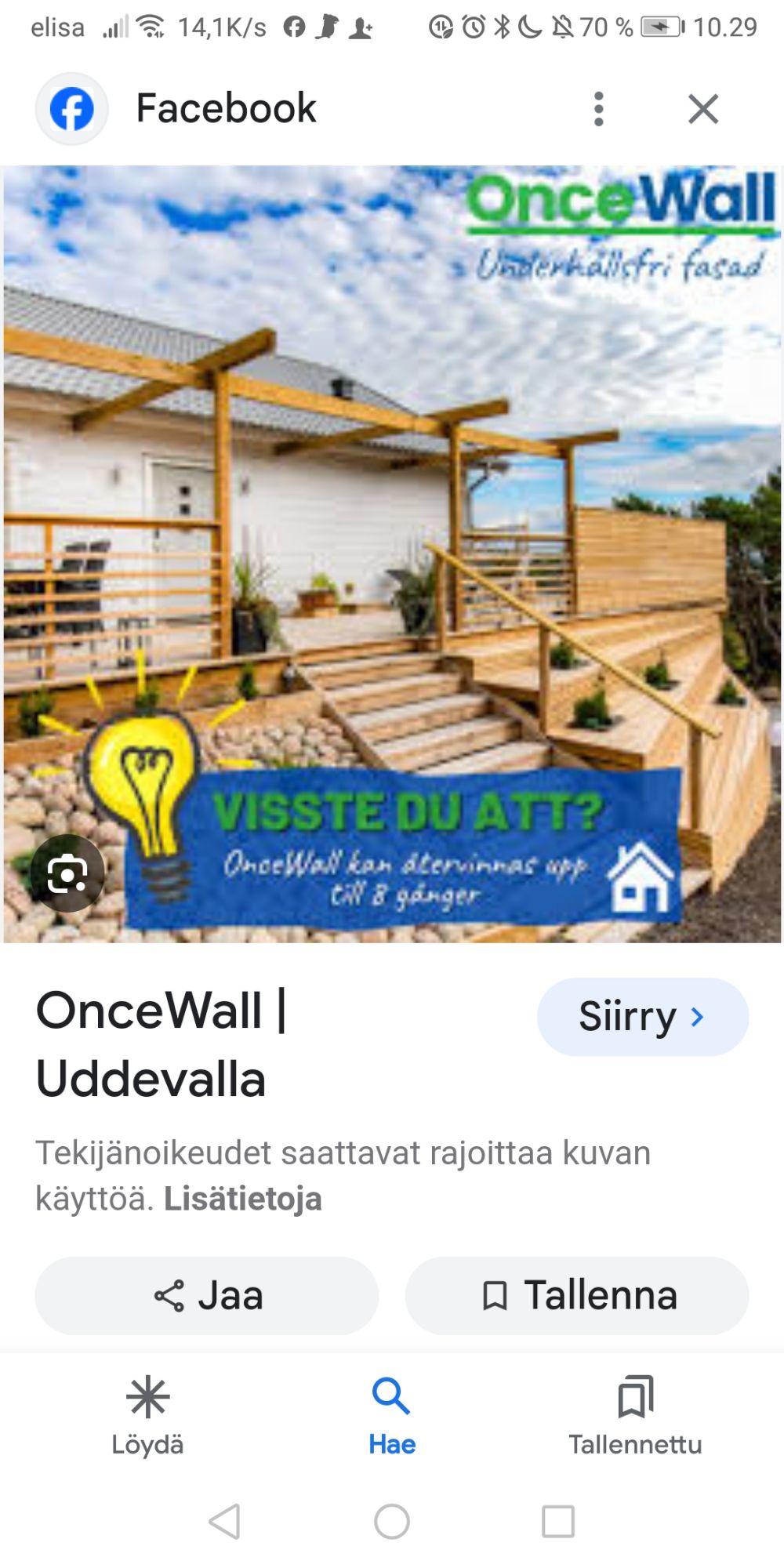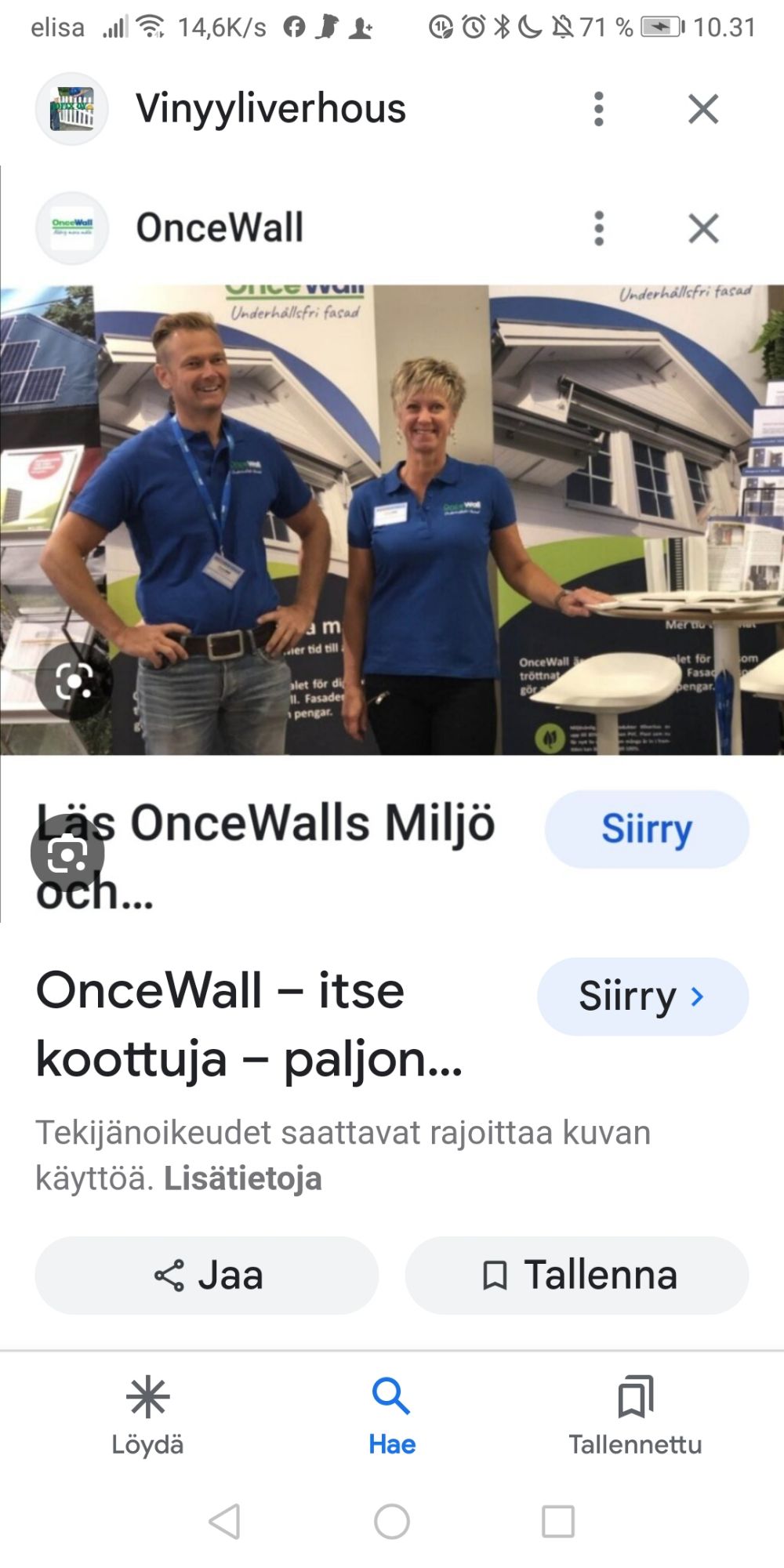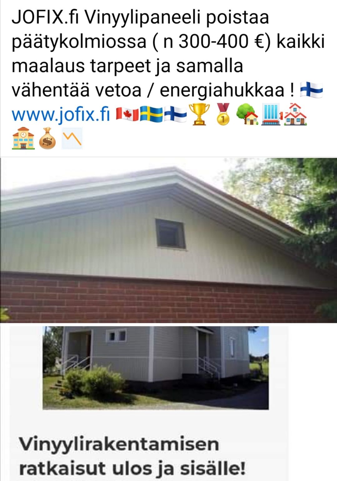 ?? TIESITKÖ, että voit KOOTA ilman naulakonetta, vasaraa ym, klik kuin Vinyyli lattia , kuin ” LEGO” valmiilla Rosteriruuveilla  ruotsalaisen OnceWallse 2000 luvun Energiaa säästävä Talon Ulkoverhous valmiisiin reikiin 40 cm välein. Kevyt, yksi 2 lauta on kerralla vajaa 2 m2 neliötä, Takuu heti 30 vuotta ilman huoltoa – MUTTA hinta sama kuin Puu paneelilla!